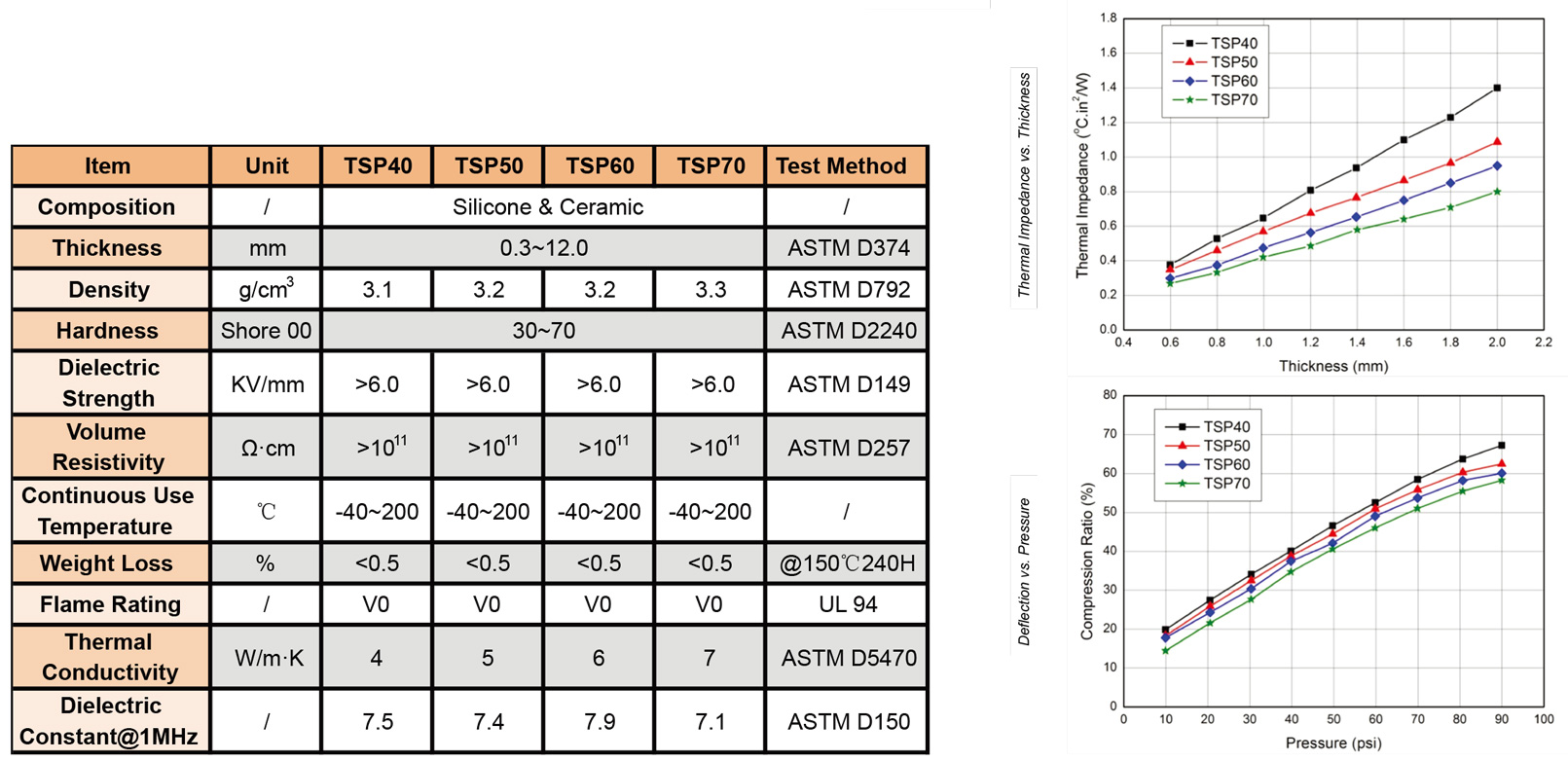 TM TSP系列硅膠導熱墊是一種經濟高效的導熱解決方案,具有低壓縮力、低熱阻、超軟性能和高適應性。用于填充電子元件和散熱器之間的空氣間隙。具有高壓縮性、粘性表面、柔軟性和靈活性。在熱導率方面有一系列產品可供選擇,從1.5W/m.k到17W/m.k。" />